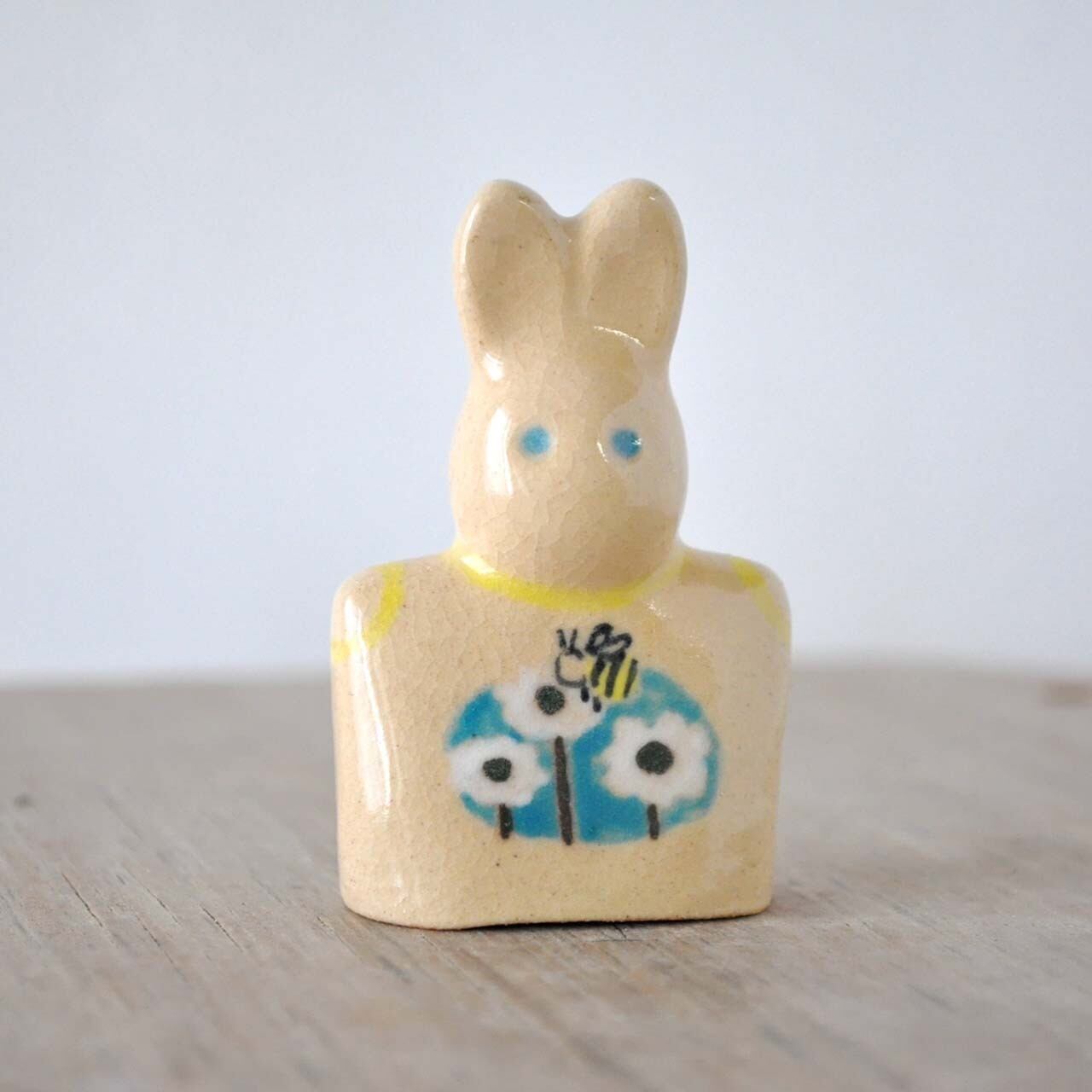 たちみみうさぎの陶製の指人形です。