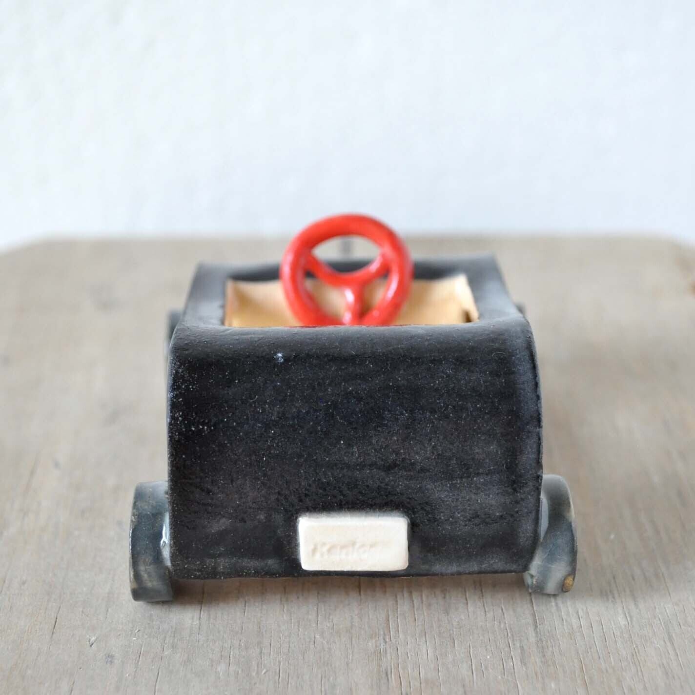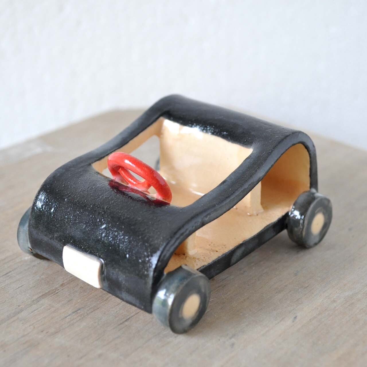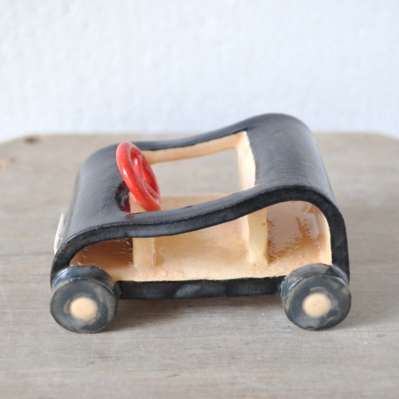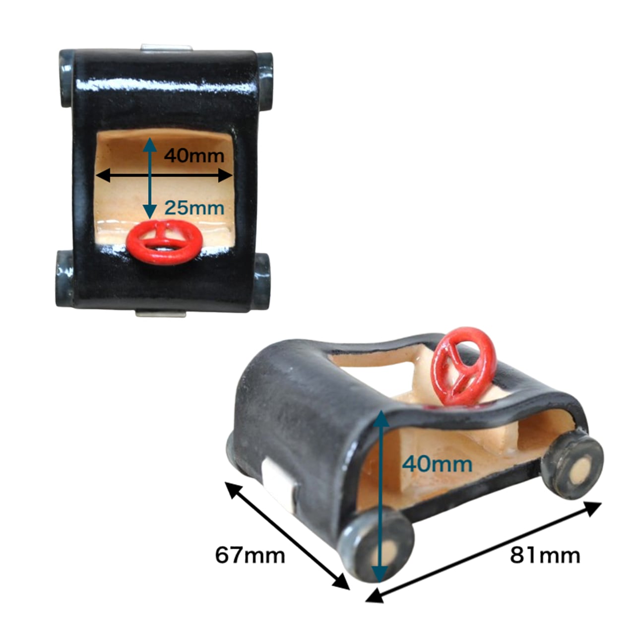 This ceramic car is entirely handmade, giving each piece its own unique charm. Depending on the size of the finger puppet, it can be placed in the car. Please refer to the images for an example of a puppet seated.