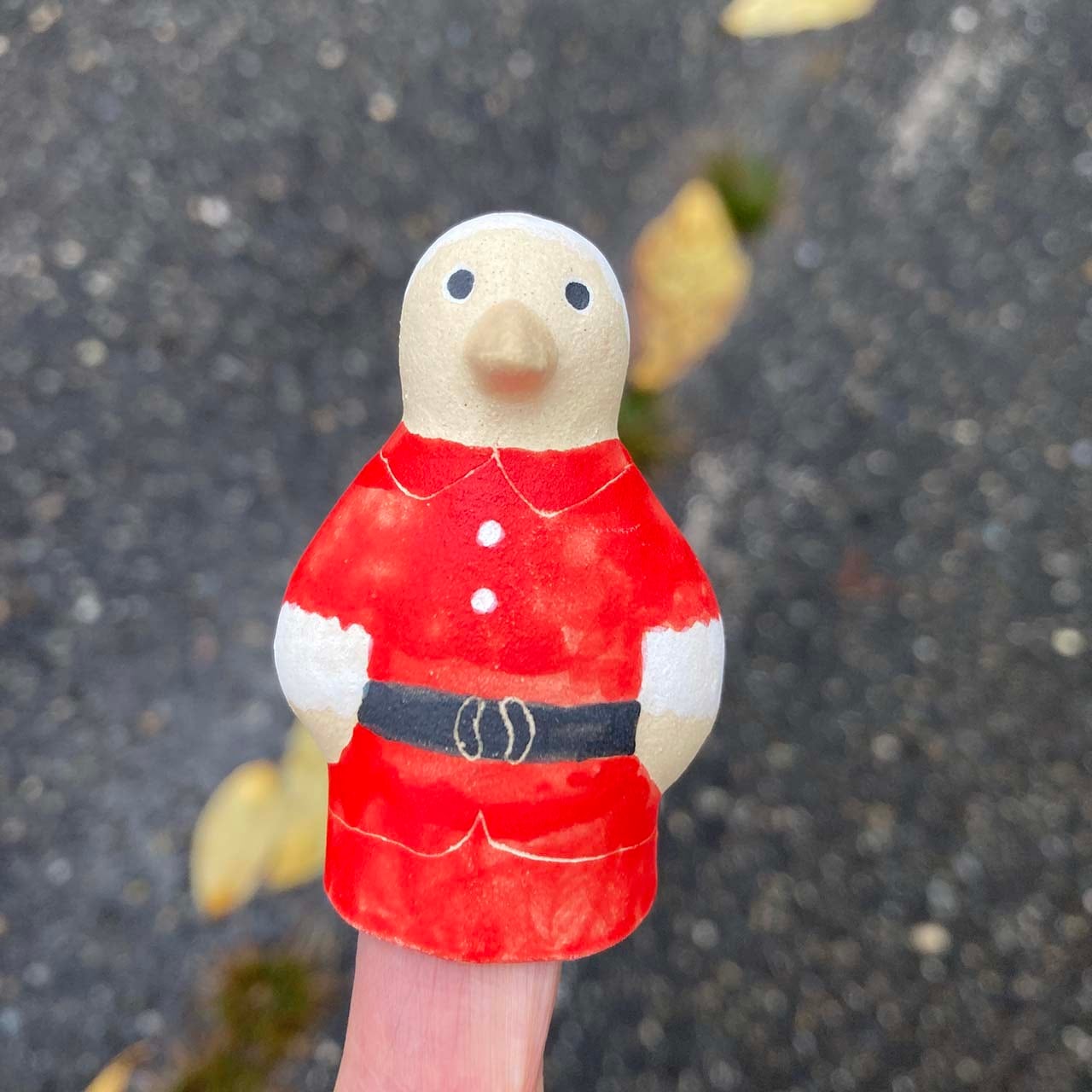 サンタの服のとり/bird-shaped puppet in a Santa costume