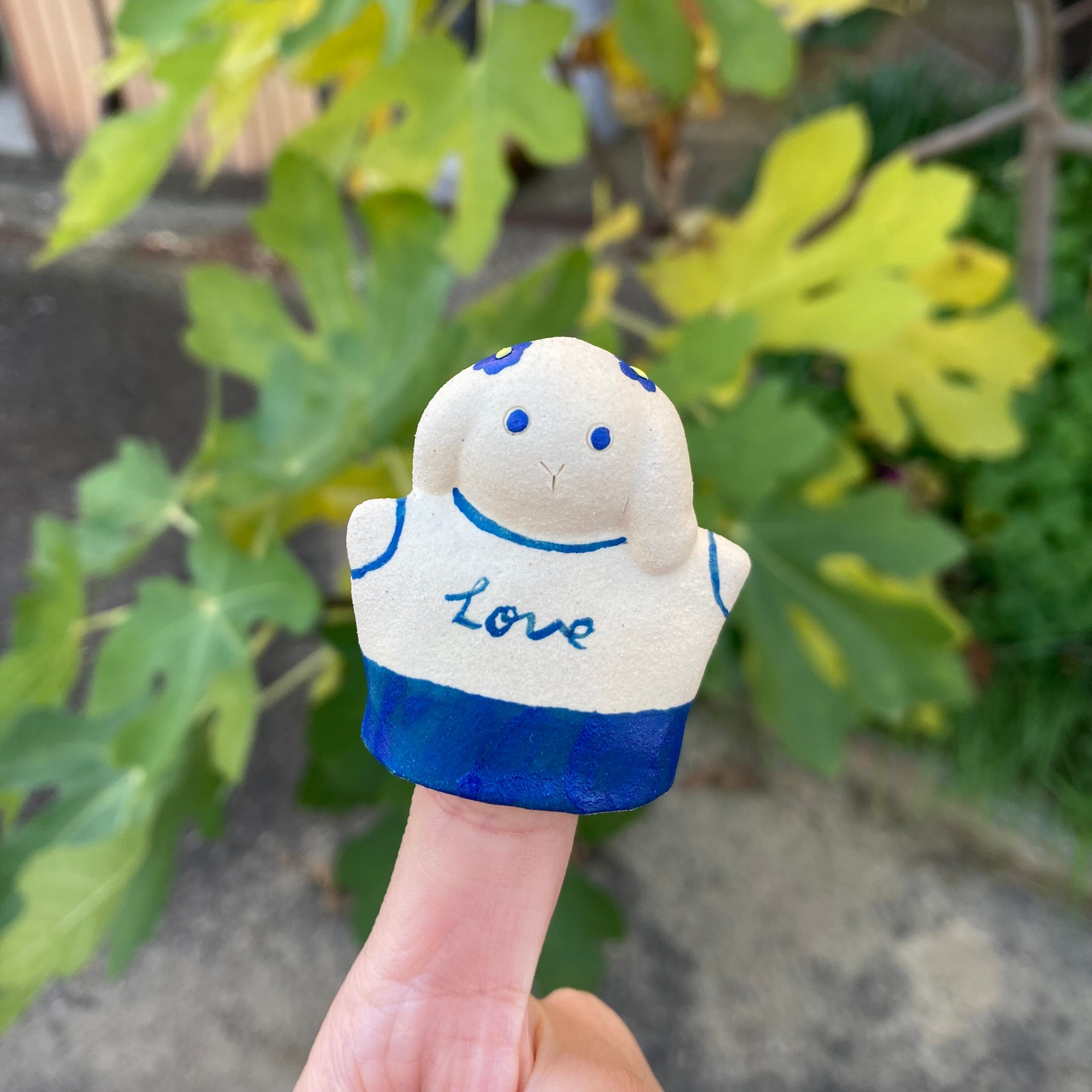たれみみうさぎの陶製の指人形です。