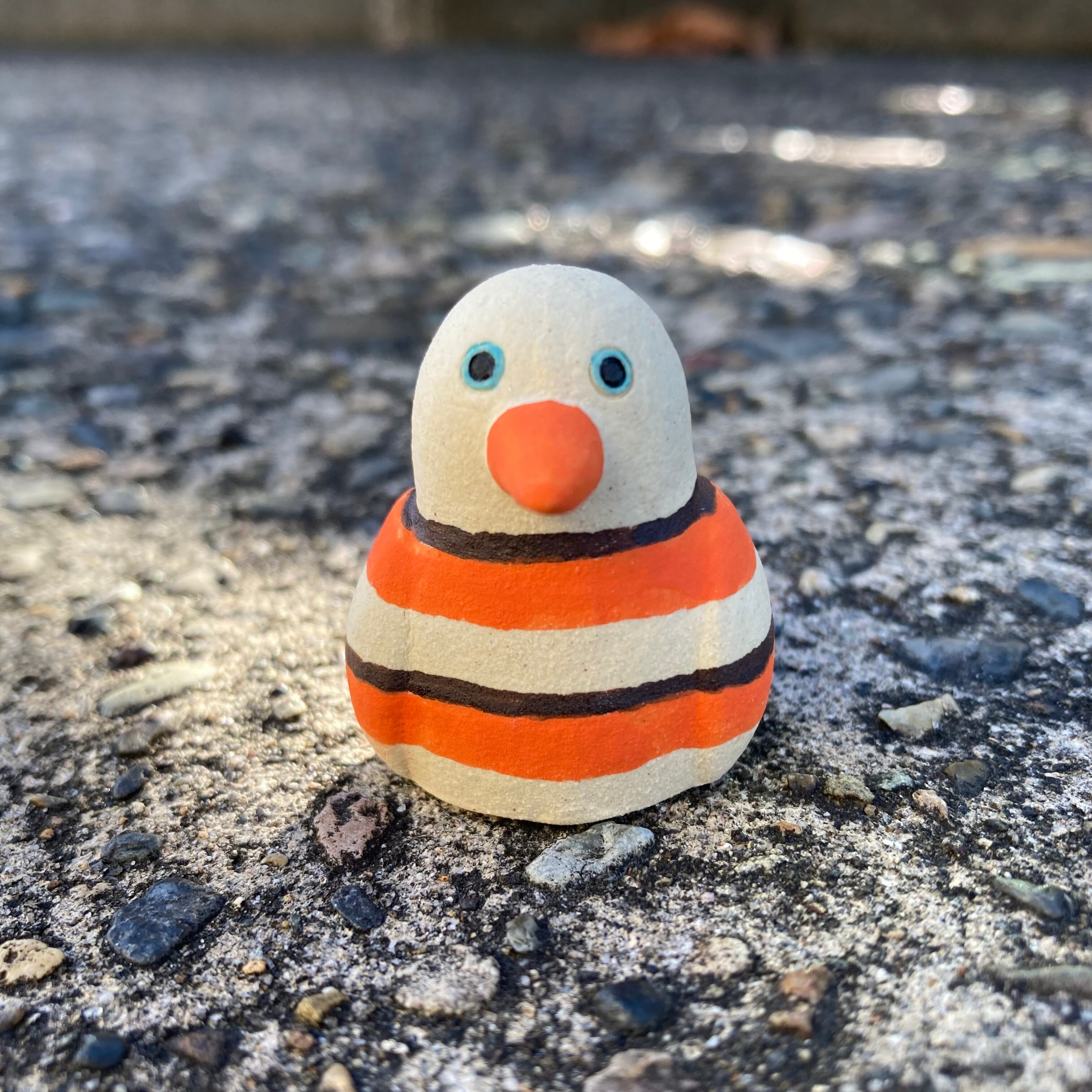 オレンジボーダーの服の小さいとり